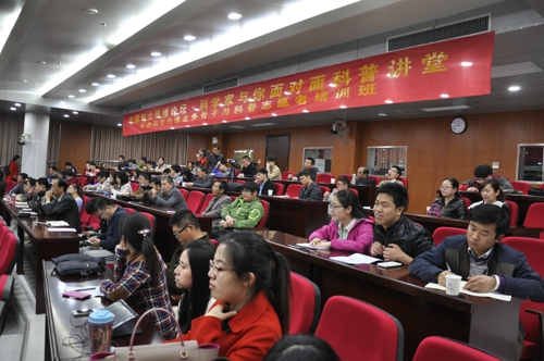 當日上午,臺灣臺中科技館館長孫維新應邀做題為《在爛泥溝渠中仰望星空》、《21世紀科普場館的變革與創新——從臺灣科博館的實例談起》兩場報告。他以英國文豪王爾德的名言“我們都身陷爛泥溝渠之中,但還是有些人會抬頭仰望星空”拉開了講演的序幕。報告中,他用絢麗的天文圖片和影像資料帶我們走進了“日月星辰的故事”,包括“恒星是用什么物質組成的、為什么會發光”、“天蝎座與中國歷史的小故事”,還有馬頭星云、薔薇星云星團,夏季大三角等等,用形象的比喻讓我們理解了太陽磁暴現象不會威脅到地球。講解了天文學知識后,孫館長播放了自己創作的以伽利略為主角的舞臺劇,向我們詮釋了一個科學工作者的理念與堅持。