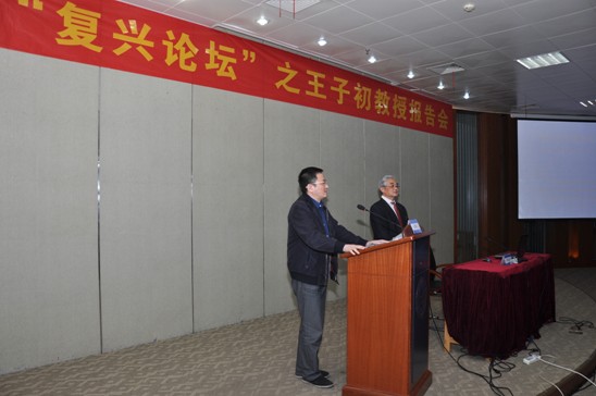 4月23日晚,“復興論壇”系列報告會之三十三講在東活五樓國際學術報告廳隆重舉行。中央音樂學院著名教授王子初先生應邀作題為《尋找遠古音樂的足跡》的精彩報告。人文學院執行院長湯書昆主持本次報告會,中國科大教育基金會秘書長郭勝利向主講嘉賓贈送紀念品。