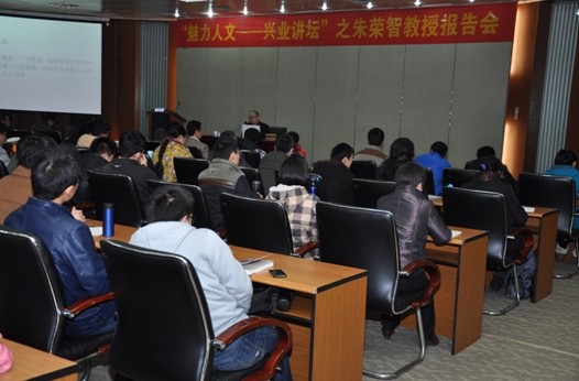 3月13日晚,“魅力人文—興業講壇”系列講座學術報告會在東活五樓國際學術報告廳隆重舉行。臺灣元培科技大學朱榮智教授應邀做客我校,作題為《孔子仁愛思想現代意義新解》的精彩報告。人文學院分黨委書記潘正祥主持本次報告會,人文學院教授、中華文化大學堂創辦人劉仲林代表主辦方向主講嘉賓贈送紀念品。