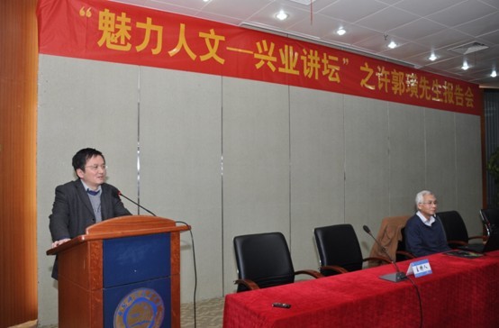 4月21日晚7點,“魅力人文—興業講壇”系列報告會在東活五樓學術報告廳隆重舉行。臺北故宮博物院資深中國書畫專家許郭璜先生應邀做題為《書畫菁華:臺北故宮博物院經典藏品選介》的報告,人文學院執行院長湯書昆主持本次報告會,中國科技大學教育基金會秘書長郭勝利向主講嘉賓贈送紀念品。