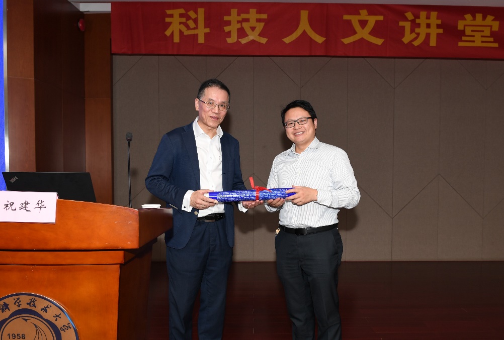 這是繼國家博物館原副館長陳履生、世界知名語言學家王士元院士之后,“科技人文講壇”系列報告會又邀請的一個重量級學者——祝建華教授,由我校人文與社會科學學院組織。人文學院黨委書記褚建勛贈送了“科技人文講壇”海報紀念版并作總結發言:感謝祝建華教授帶來“計算社會科學”這一新興前沿領域的精彩報告,相信這會是一個很好的開始,鼓勵“新文科”的博士生碩士生積極與科大相關理工醫科院系老師同學多交流多合作,敢于創新、善于創新,在新的“計算社會科學”領域大膽開拓。在科大新文科建設布局下,人文學院將會與大數據學院、輿情分析產業等加強合作,在“計算社會科學”這新興交叉學科領域作出一番新天地。