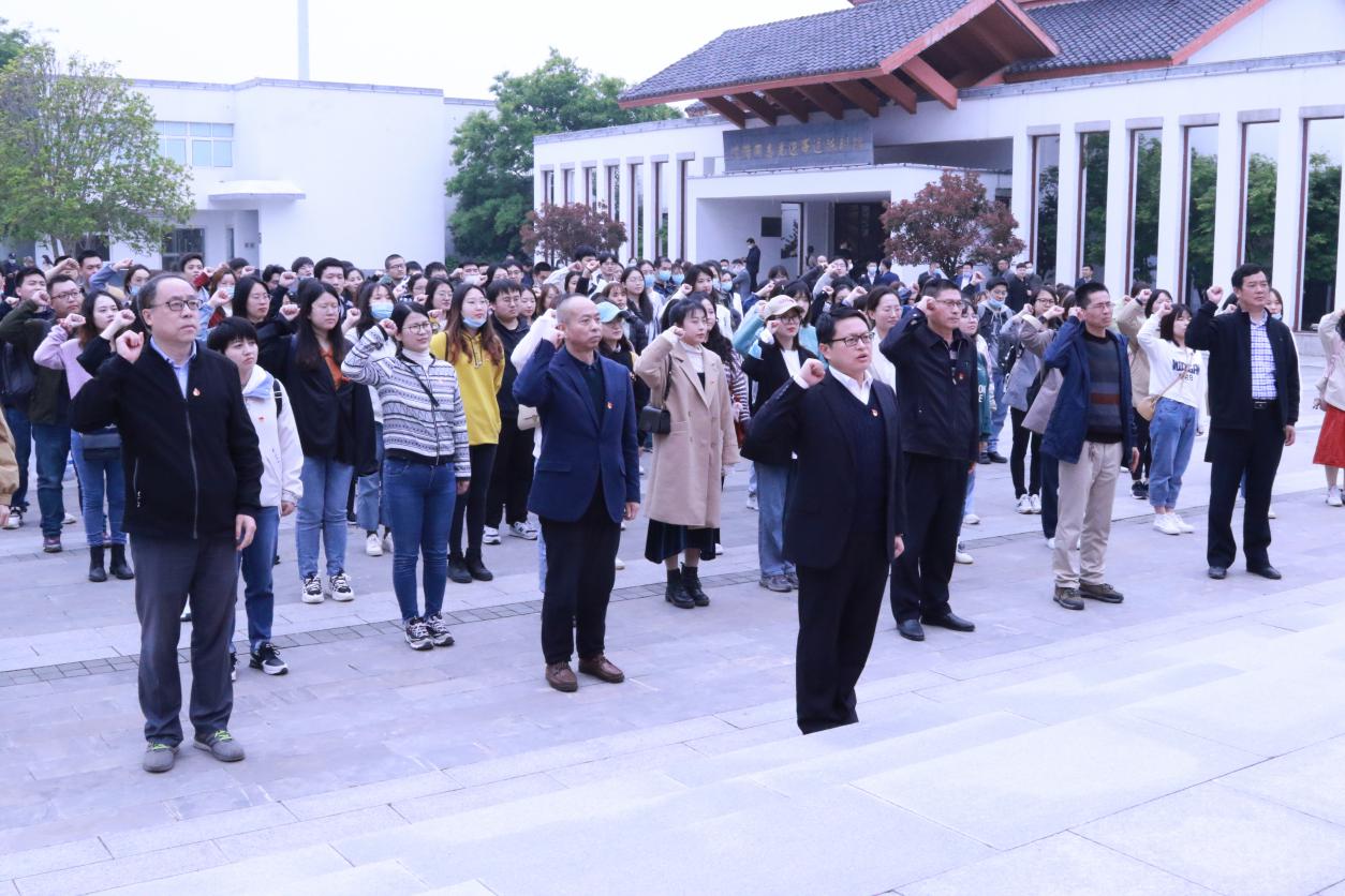 最后,在沈浩紀念館前,書記帶領全體黨員面對鮮紅的黨旗,緊握右拳,重溫入黨誓詞。提醒全體黨員堅定信仰,時刻牢記黨的宗旨,保持黨的優秀傳統和作風,牢記自己在黨旗下的莊嚴宣誓,并用實際行動來踐行這一無上光榮的諾言。