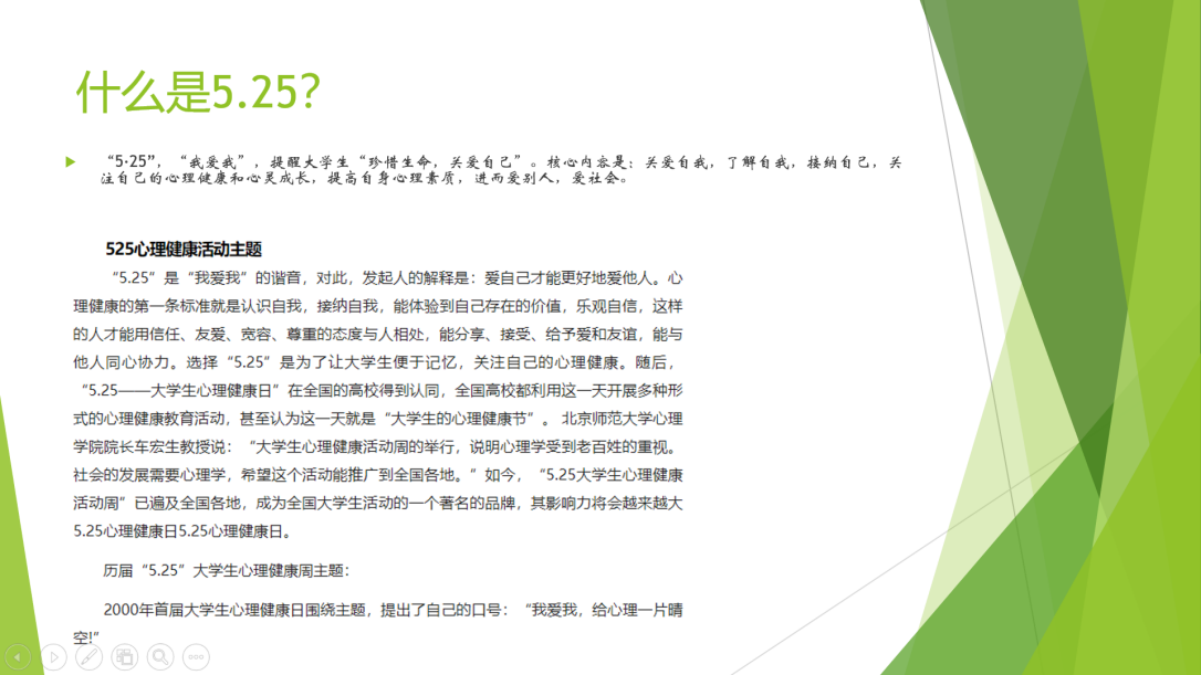 521日, 人文學院MTI教育中心2019級研究生通過騰訊會議平臺在線開展“珍惜生命、關愛自己”心理健康主題活動。本次活動由心理委員程潔芳組織召開,活動旨在幫助同學們提高心理素質,了解并接納自我,進而具備愛別人、愛社會的能力。