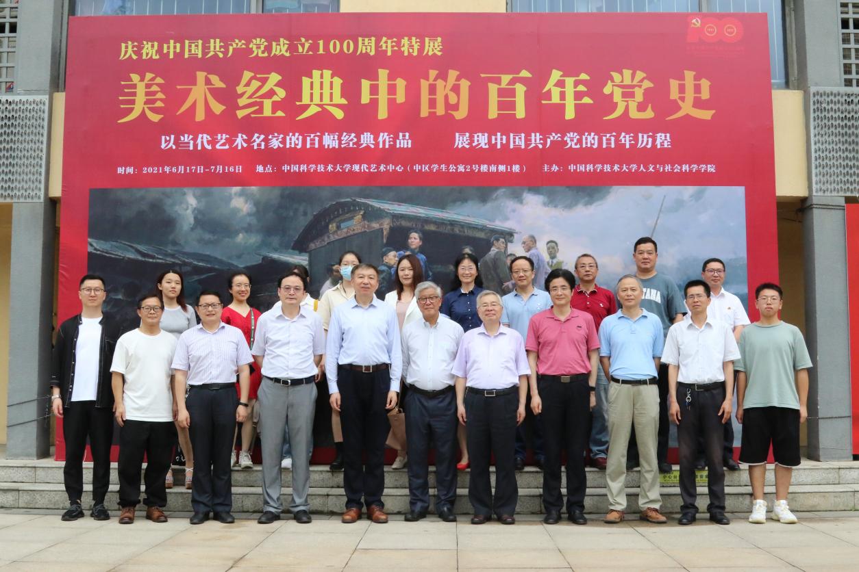 6月17日下午1:30,由中國科大人文與社會科學學院主辦的“慶祝中國共產黨成立100周年特展——美術經典中的百年黨史”在中國科學技術大學現代藝術中心拉開帷幕。展覽旨在以精選的一百幅當代藝術名家的美術經典作品,展現中國共產黨的百年奮斗歷程。校黨委書記舒歌群出席開幕式并致辭,參加開幕式的還有校長特別助理朱燦平,本次展覽策展人國家博物館原副館長、人文學院藝術與科學研究中心主任陳履生先生,人文與社會科學學院院部及各系(中心)黨政班子成員和部分師生,儀式由人文學院執行院長石云里主持。